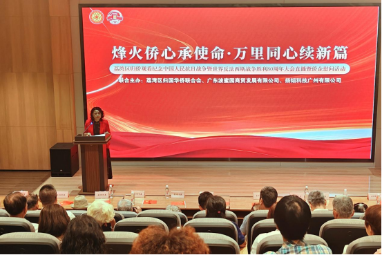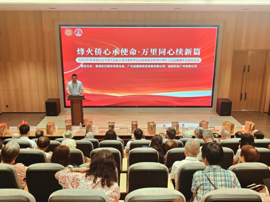 2025年9月3日上午,為紀(jì)念中國(guó)人民抗日戰(zhàn)爭(zhēng)暨世界反法西斯戰(zhàn)爭(zhēng)勝利80周年,弘揚(yáng)偉大抗戰(zhàn)精神與愛國(guó)主義精神,廣州市荔灣區(qū)僑聯(lián)聯(lián)合廣東波蜜園商貿(mào)發(fā)展有限公司(以下簡(jiǎn)稱波蜜園公司)、揚(yáng)韜科技廣州有限公司,在1906科技園禮堂,共同舉辦“烽火僑心承使命 萬(wàn)里同心續(xù)新篇——荔灣區(qū)歸僑觀看紀(jì)念中國(guó)人民抗日戰(zhàn)爭(zhēng)暨世界反法西斯戰(zhàn)爭(zhēng)勝利80周年大會(huì)直播暨僑企慰問(wèn)活動(dòng)”。荔灣區(qū)老歸僑代表、基層僑聯(lián)工作骨干、揚(yáng)韜公司員工代表共100多人齊聚一堂,在莊重?zé)崃业姆諊秀懹洑v史、緬懷先烈,珍愛和平、開創(chuàng)未來(lái)。
