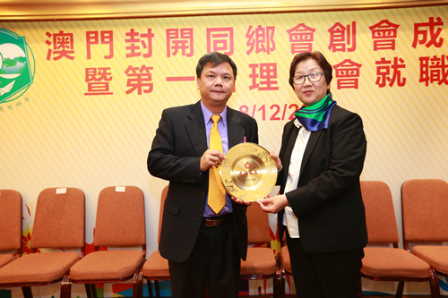 ??? 12月8日,澳門封開(kāi)同鄉(xiāng)會(huì)創(chuàng)會(huì)成立慶典暨第一屆理事會(huì)就職典禮在澳門舉行,郭鳳蓮當(dāng)選會(huì)長(zhǎng)。肇慶市僑聯(lián)主席黃志堅(jiān)到場(chǎng)祝賀。