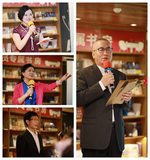 ??? 張文峰說:作家們寫出了作品,由朗誦家們?yōu)橹迳狭寺曇舻某岚?,由此而飛得更快更遠(yuǎn)更好!我覺得這是一個(gè)非常好的方式。