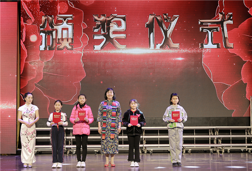 △南城街道黨委委員、街道僑聯(lián)主席張小燕為獲一等獎的學(xué)生頒獎。