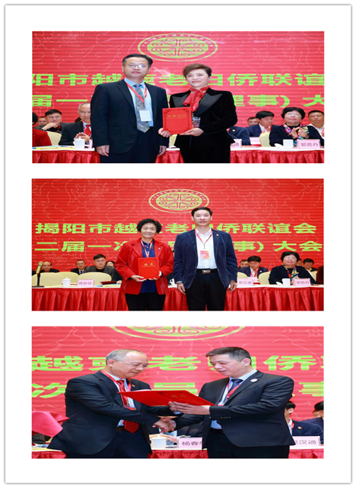 ??? 會議審議通過了呂瑩娜作的一屆理事會工作報告和章程修改草案;選舉產(chǎn)生了第二屆市越柬老歸僑聯(lián)誼會理事會領(lǐng)導(dǎo)機構(gòu),呂瑩娜當(dāng)選會長,陳黎當(dāng)選副會長兼秘書長,夏為平、王楚文、陳衡杰、鐘慶鴻、鄭漢波、蔡幼芳、羅少淳、林桂娟、蔡礎(chǔ)靈當(dāng)選副會長,黃嘉南、楊俊興、黃慶冰、王媛、魏皓明、王少洪當(dāng)選副秘書長;會議還聘請了方僑生、陳妙珍、蔡堅毅、陳木和、陳見喜等一批榮譽會長、名譽會長、顧問并頒發(fā)證書;揭陽市僑界青年聯(lián)合會主席謝錫杰代表“香港揭陽僑聯(lián)誼會”、“揭陽市僑聯(lián)法律顧問委員會”、“揭陽市僑界青年聯(lián)合會”在大會上致賀詞。