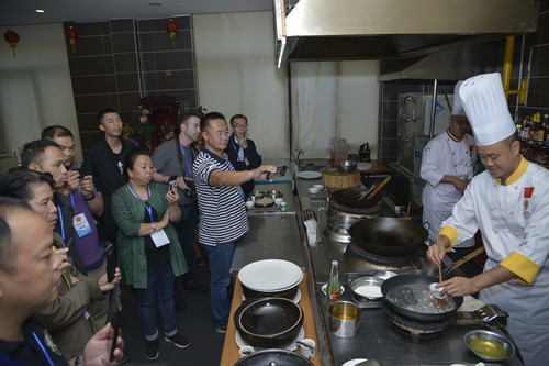 ??? 美食是佛山一張靚麗的名片。俗話說“食在廣州,廚出鳳城”,代表團(tuán)一行來到順德廚師協(xié)會(huì)參觀,廚師協(xié)會(huì)會(huì)長(zhǎng)羅福南等三位大廚為代表團(tuán)演示了順德炒牛奶,桂花銀芽炒粉絲等多道順德美食,大家紛紛掏出手機(jī),仔細(xì)記錄每一道菜的做法。